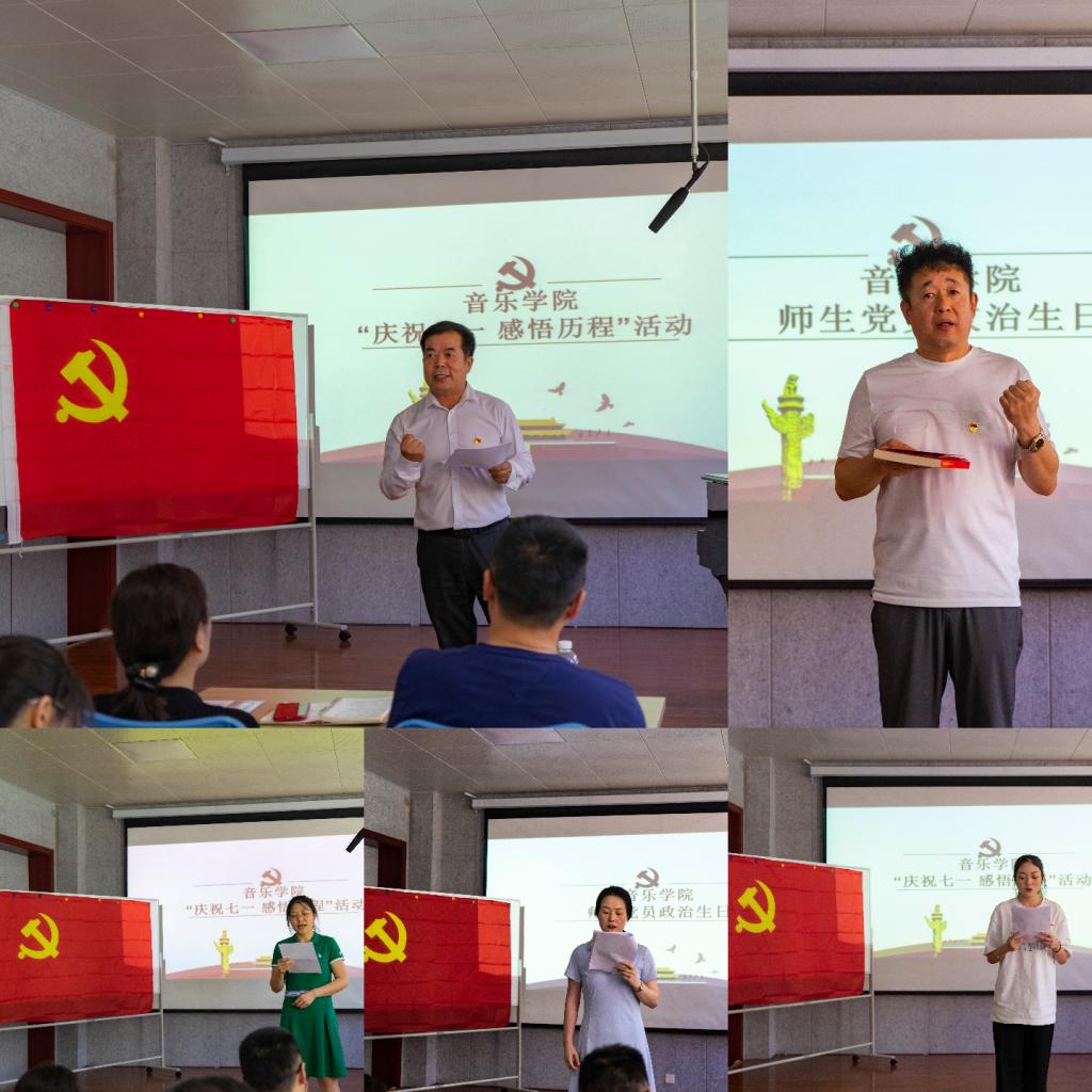 6月29日下午,音乐学院在艺术楼202会议室开展“庆祝七一,感悟历程”主题活动,音乐学院全体师生党员参加活动。本次活动由教工党支部书记吕博主持。