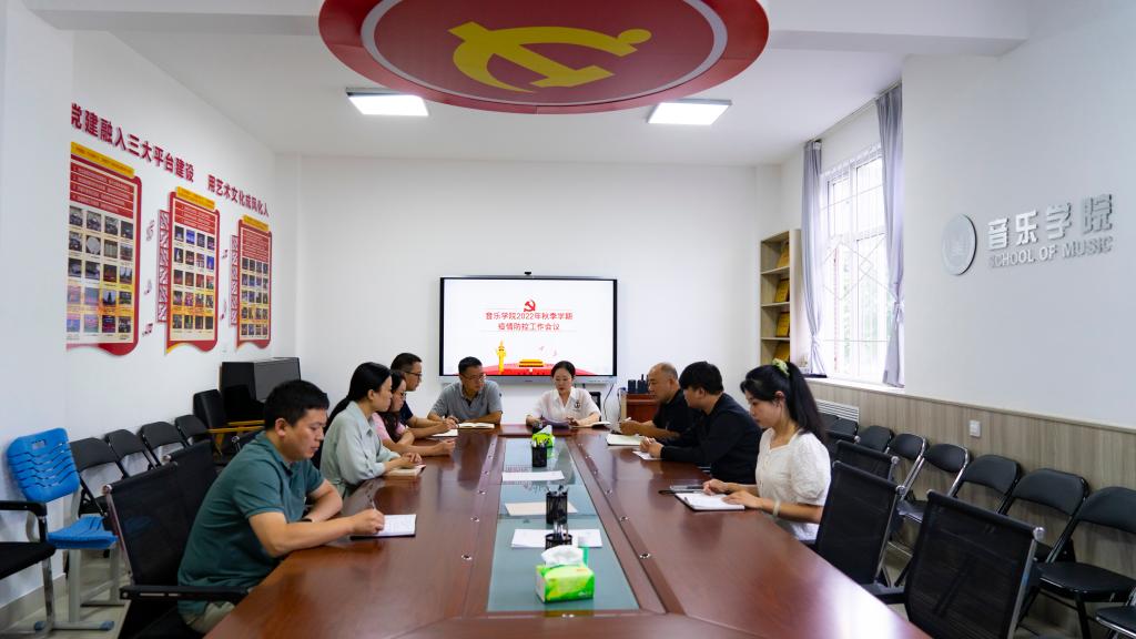 9月5日上午,音乐学院在艺术楼206会议室召开了2022年秋季学期疫情防控工作会议,党政领导、党政办主任、全体辅导员出席会议,会议由党委副书记、副院长樊振宇主持。
