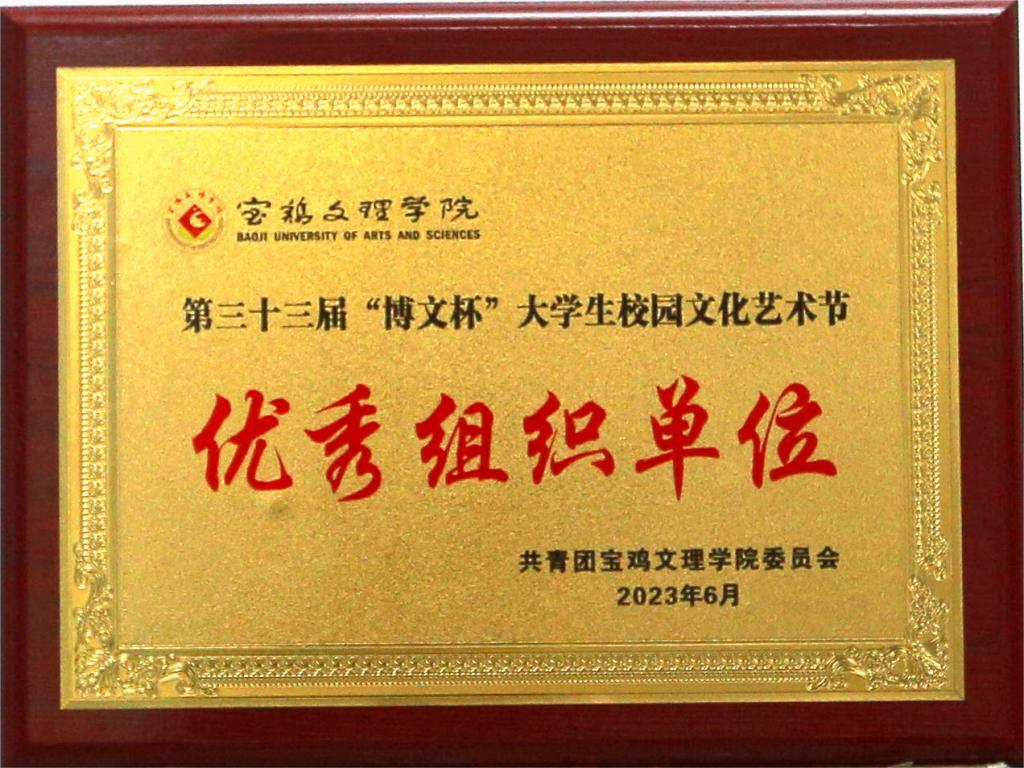 音乐学院荣获2023年党史、团史知识竞赛优秀组织单位,第三十三届“博文杯”大学生校园文化艺术节优秀组织单位。