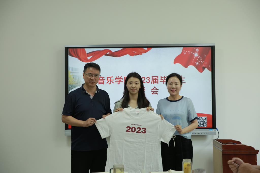 会后,学院领导为省级优秀毕业生、校级优秀毕业生代表赠送了纪念衫。(音乐学院党委 文/刘丽 图/李继刚 审核/黄玮)