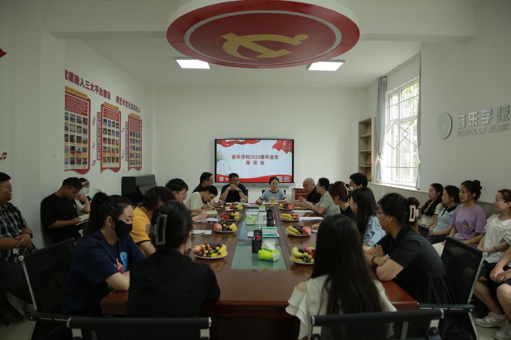 为更好倾听毕业生心声,充分了解毕业生学习、生活、就业情况,不断强化管理育人、服务育人的针对性和实效性,6月27日上午,音乐学院举办2023届毕业生座谈会。学院党政领导、教师代表、2023届毕业生代表、在校生代表齐聚一堂,共话学习生活的感悟收获,畅谈人生未来的发展规划。会议由党委副书记、副院长樊振宇主持。