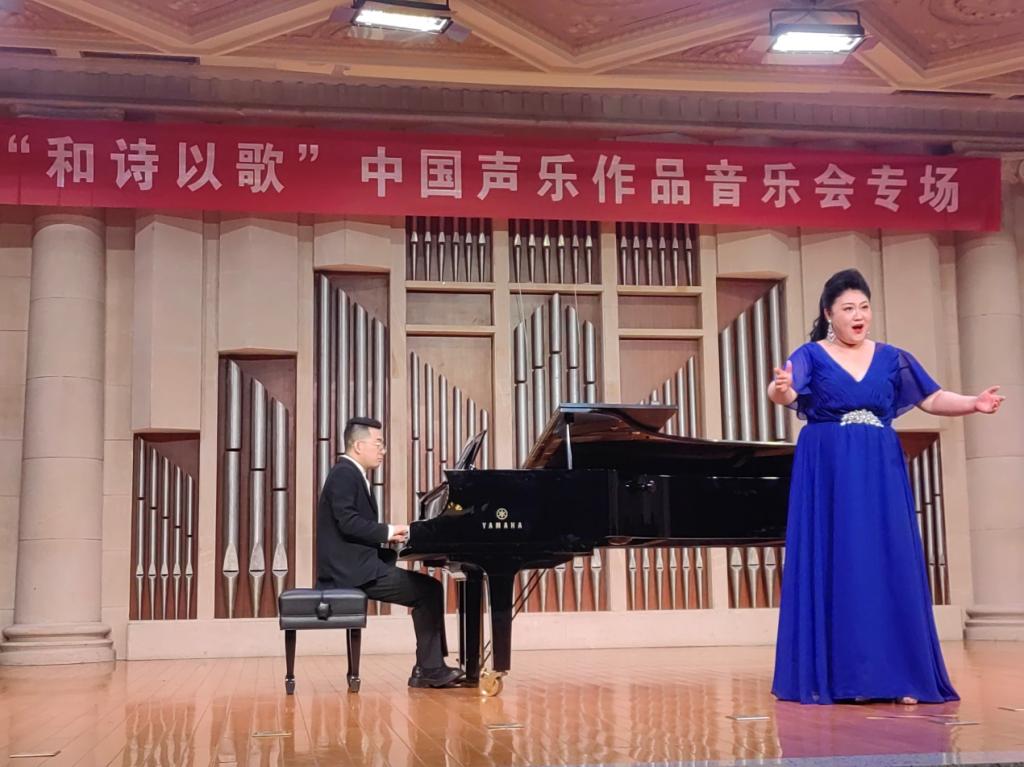 本次音乐会是青年作曲家、中国音乐学院声歌系钢琴艺术指导王龙创作的古诗词作品,曲目有《锦瑟》《山之高》《苏小小》《春花秋月何时了》《月下独酌》《登高》《一剪梅》《春日宴》等。我院教师李敏演唱了其中的作品《登高》,李敏以饱满的感情,动人的歌声,完美诠释了中国传统文化的艺术气质,在钢琴声伴奏的相互辉映下,充分展现了中国古诗词的优雅娟丽。(文/李敏 图/李敏 审核/魏安石)