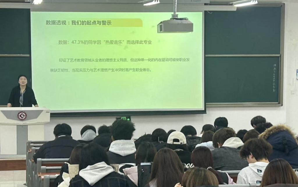 报告开场,王悦雯老师借助其针对音乐教育从业者动机的调研数据引入话题——47.3%的学生因“热爱音乐”而选择了相关专业。这种理想主义特质不仅是艺术教育的活力之源,也可能会因现实压力而导致职业倦怠。基于此,她围绕“学业规划的三维度”展开了深入阐述: