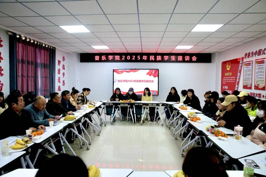 11月24日下午,音乐学院在尚朴楼1-1会议室召开2025年民族学生座谈会。座谈会由音乐学院党委副书记樊振宇主持。