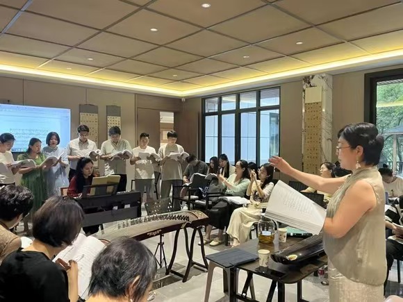 七月流火,薪火相传,“中华古谱诗词”是中华优秀传统文化中的瑰宝,为夯实古谱诗词吟唱教学与研究基础,我院教师严洪萍于2025年7月赴四川参加“中华古谱诗词传承吟唱”研讨进修班。此次活动由四川音乐学院王光祈学术研究中心和四川传曦文化艺术有限公司精心策划,汇聚了来自上海音乐学院、四川音乐学院、兰州大学、曲阜师范大学、安徽艺术学院等全国十余所高校的音乐、文学、艺术相关的专业师生,围绕“古谱文献解读”、“诗词格律与音韵”、“传统吟唱技法传承”、“现代教学场景应用”等关键议题展开系统授课。