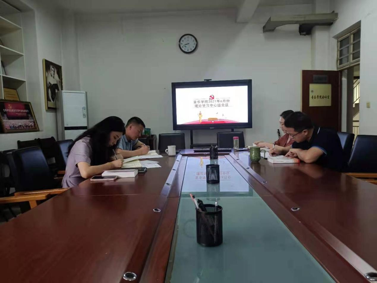 6月10日上午,音乐学院在艺术楼209会议室召开6月份理论学习中心组会议,中心组全体成员参加了会议,会议由党总支书记黄玮主持。