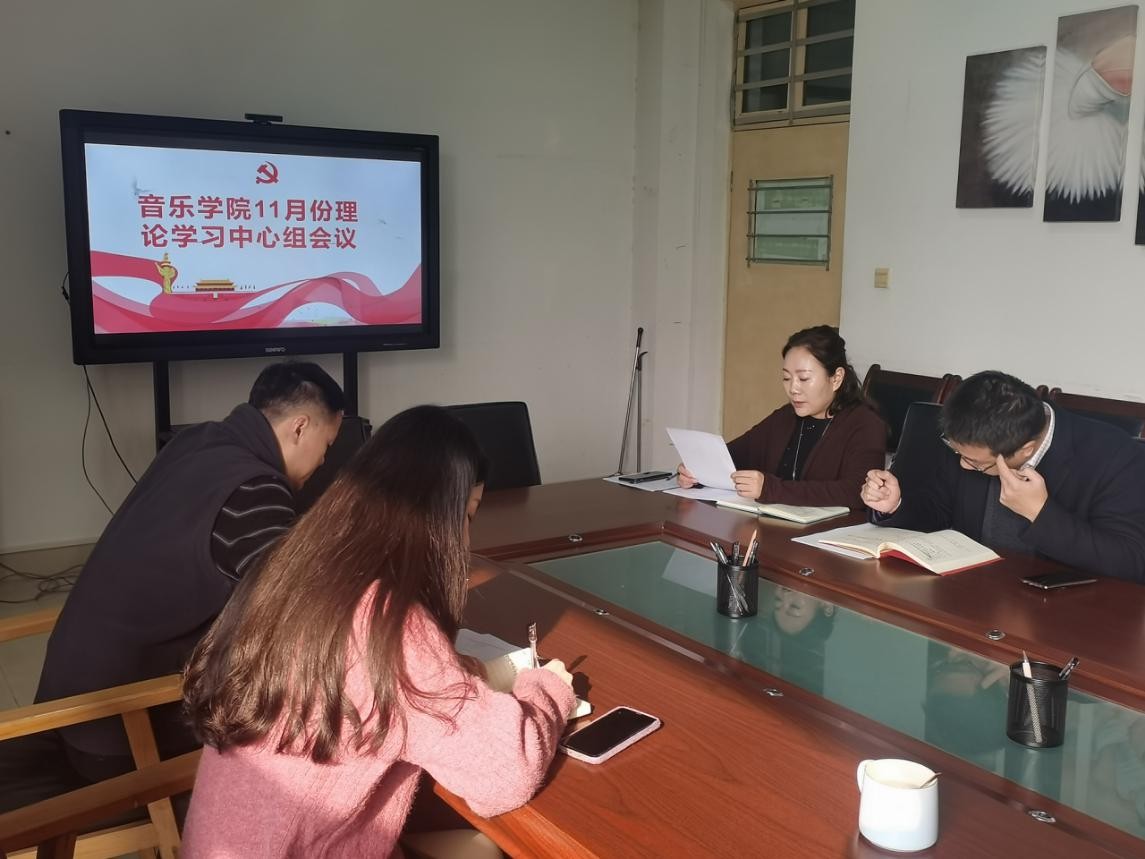 11月10日上午,音乐学院在艺术楼209召开11月份理论学习中心组会议,中心组全体成员参加了会议,会议由党总支书记黄玮主持。