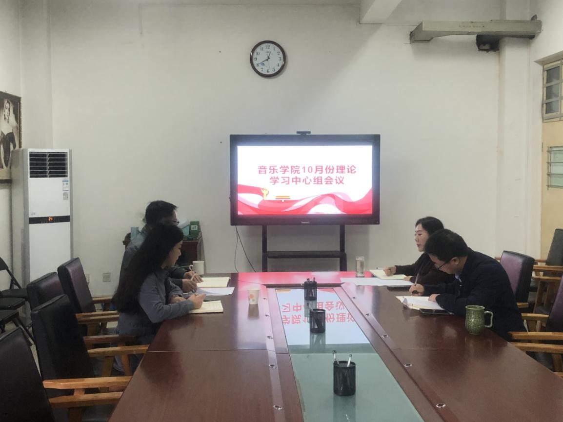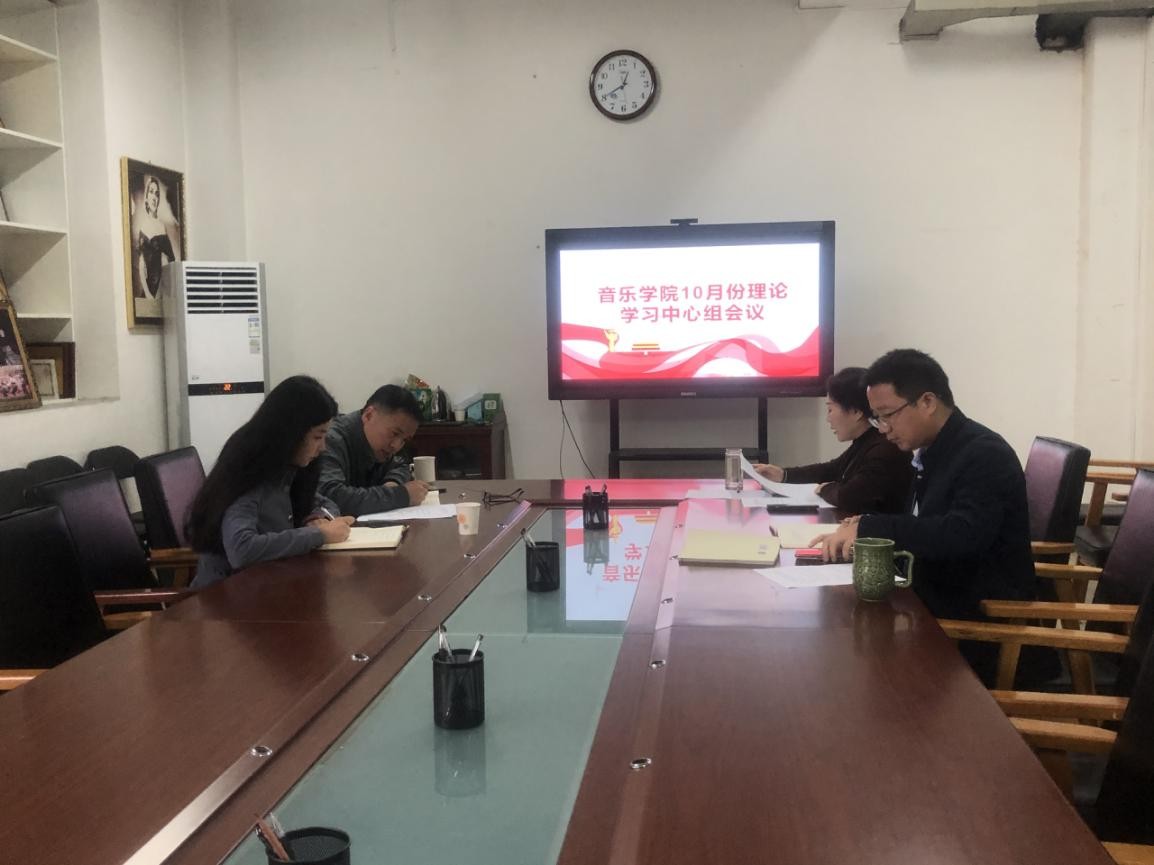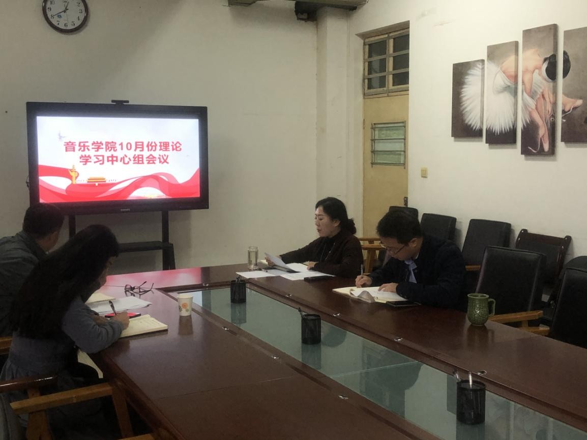 10月13日上午,音乐学院在艺术楼209召开10月份理论学习中心组会议,中心组全体成员参加了会议,会议由党总支书记黄玮主持。