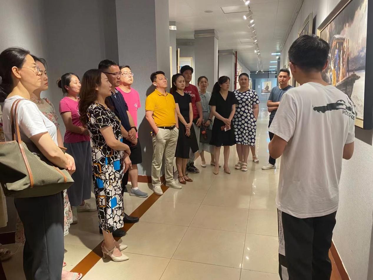 会议第一项,全体人员参观了“美术经典中的党史”画展。在参观中,全体人员在美术学院辅导员任亚莉、张波的带领下深入了解每一幅作品背后的党史故事,并欣赏了画作中构图、光影等艺术特色。大家纷纷表示参观主题画展拓展了党史学习教育的形式,丰富了党史学习教育的内容,十分具有意义。