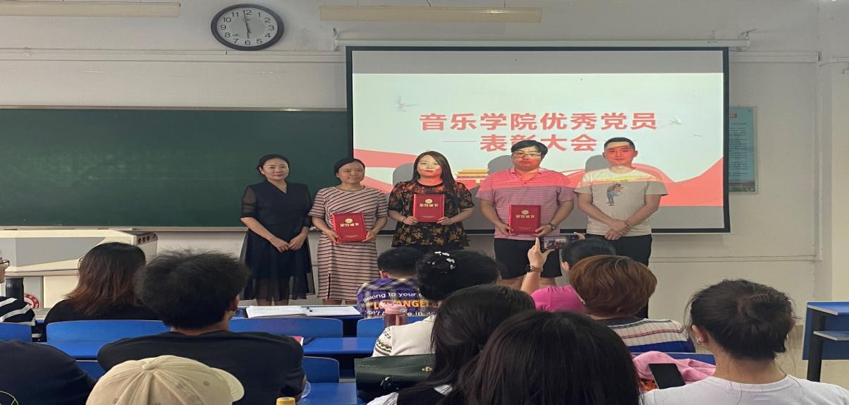 接着,由教工党支部书记张涛主持召开了“音乐学院优秀党员表彰大会”,对音乐学院优秀党员教师刘丽、牛雪瑶、邓轩、赵文平进行表彰,并由党总支书记黄玮为优秀党员教师颁发证书。牛雪瑶老师作为优秀党员代表发表获奖感言。